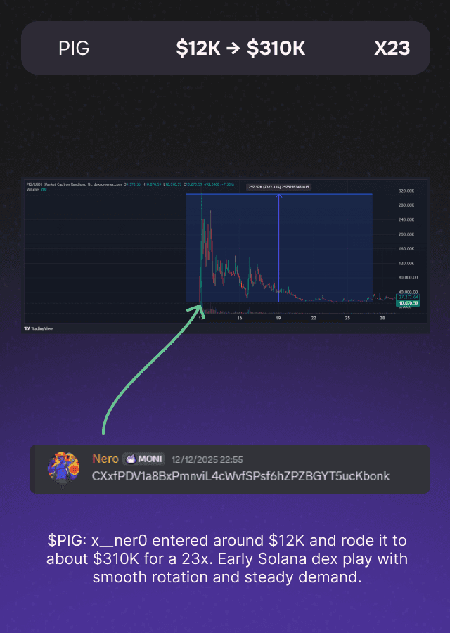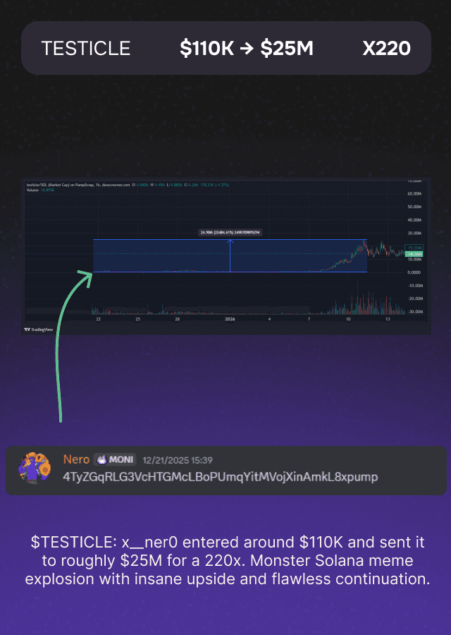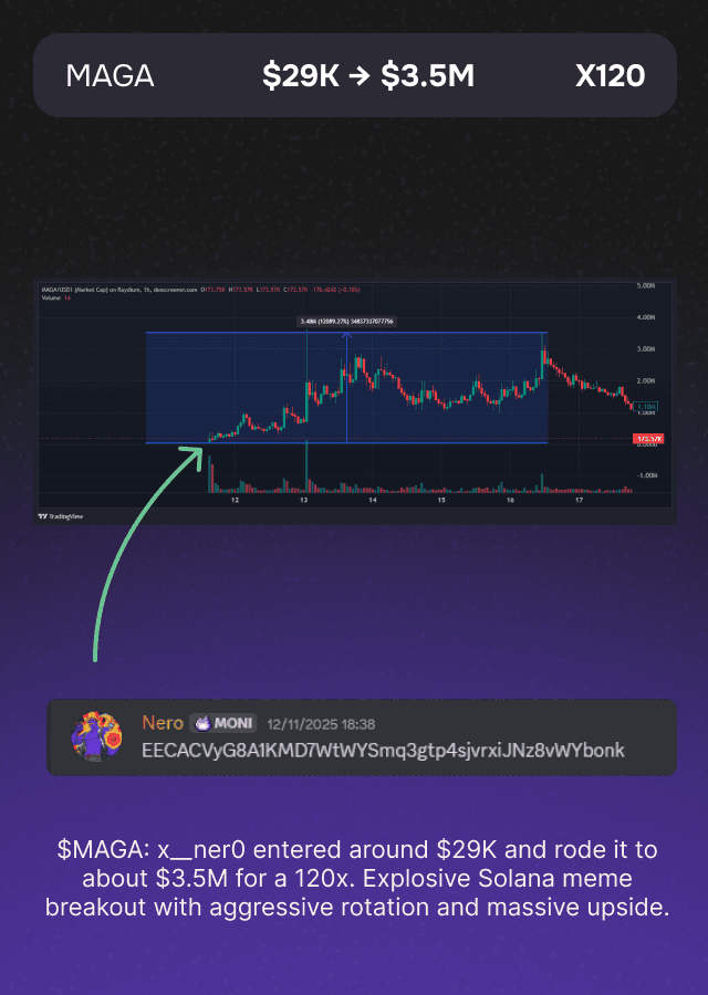 “Moni isn’t just a tool — it’s an edge machine. It gives me asymmetric information early, helps me front-run the market, and keeps me surrounded by some of the hardest-working alpha hunters in the space.”