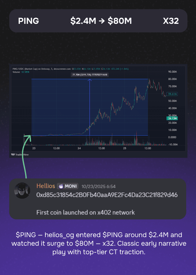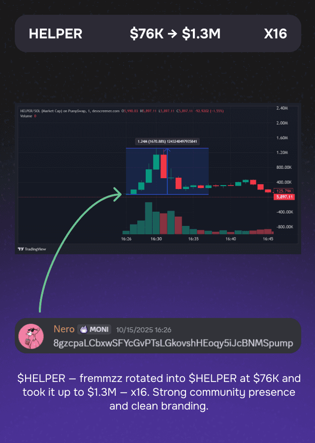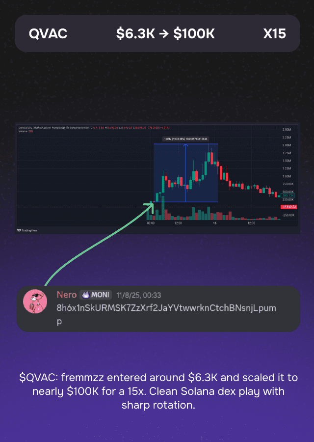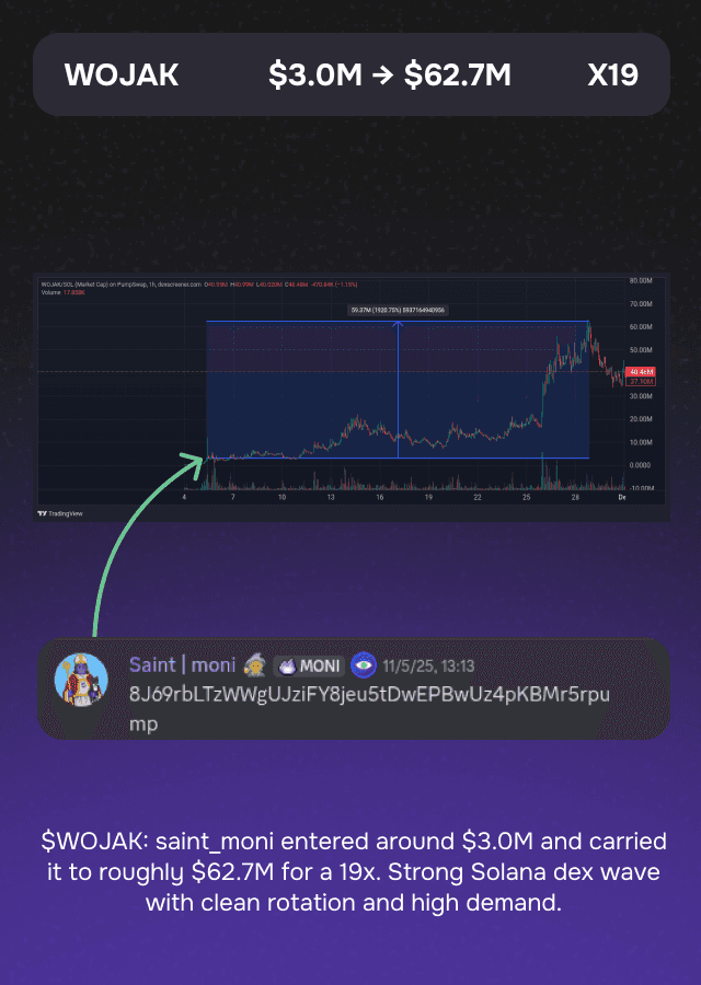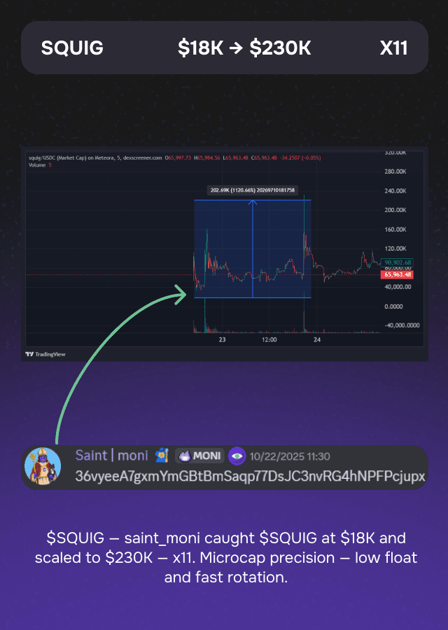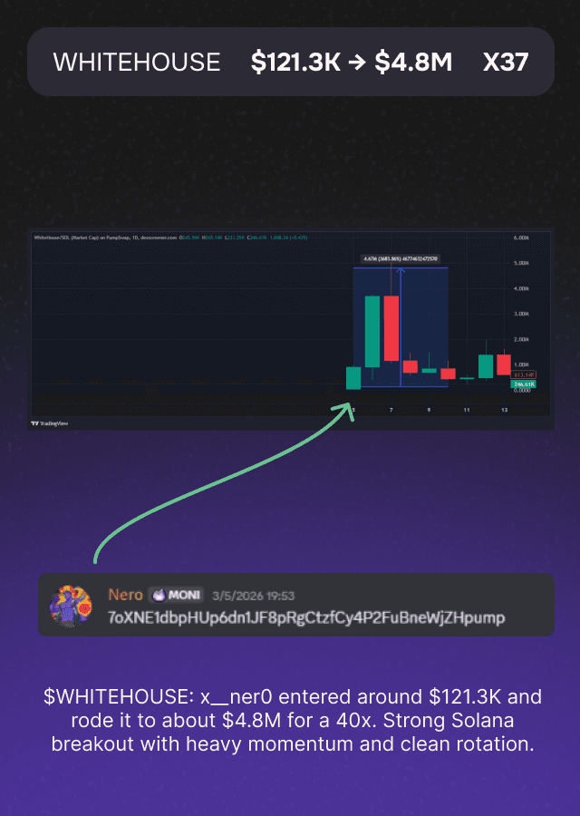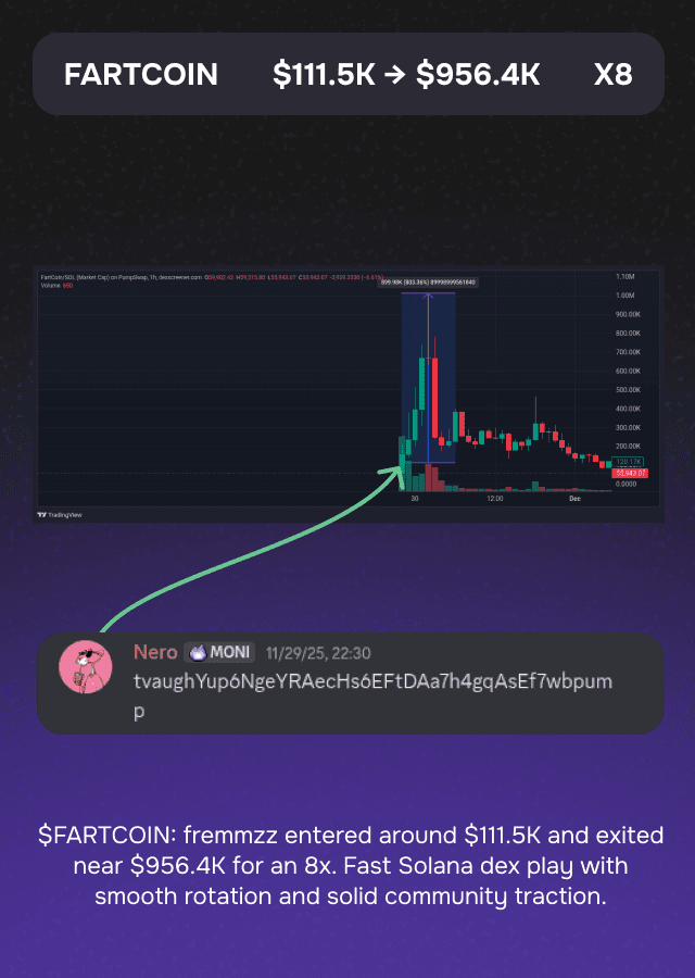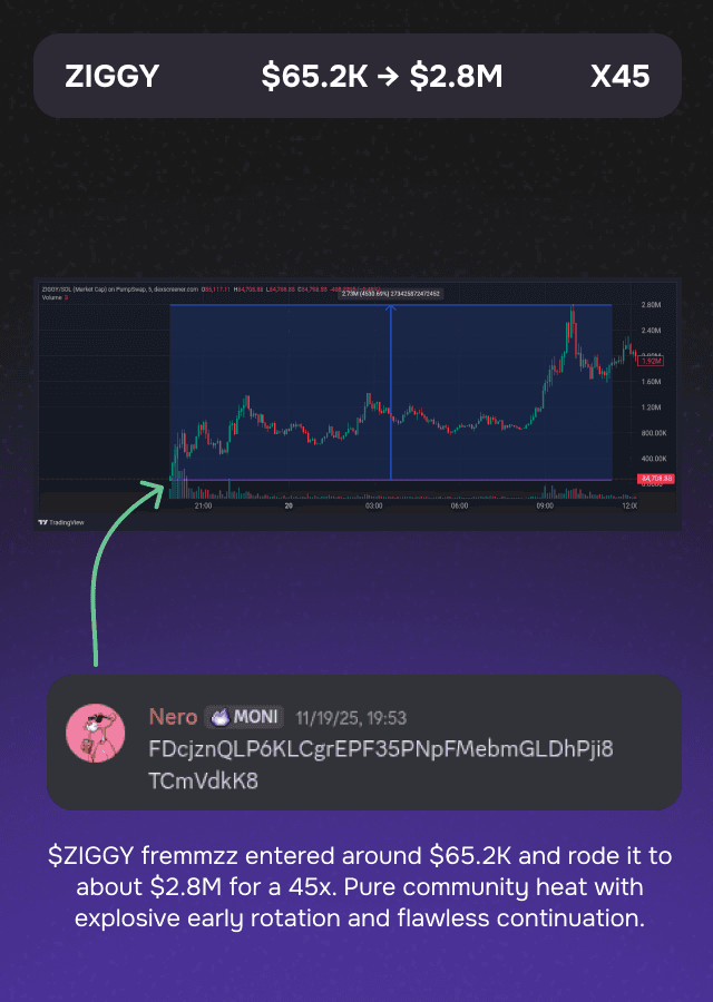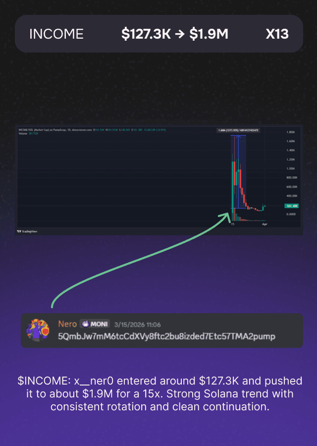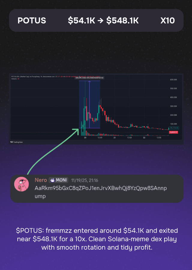 “Moni isn’t just a tool — it’s an edge machine. It gives me asymmetric information early, helps me front-run the market, and keeps me surrounded by some of the hardest-working alpha hunters in the space.”
