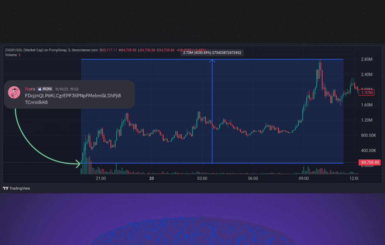 $ZIGGY: fremmzz entered around $65.2K and rode it to about $2.8M for a 45x. Pure community heat with explosive rotation and flawless continuation.